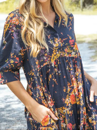Full Size Printed Half Sleeve Midi Dress Plus Size