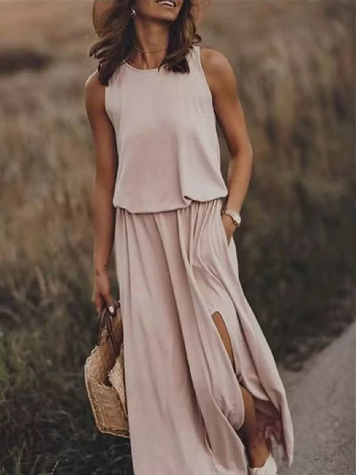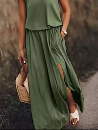 Full Size Round Neck Sleeveless Slit Maxi Dress Plus Size