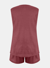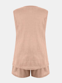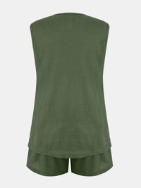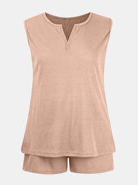 Full Size Waffle-Knit Notched Top and Shorts Set