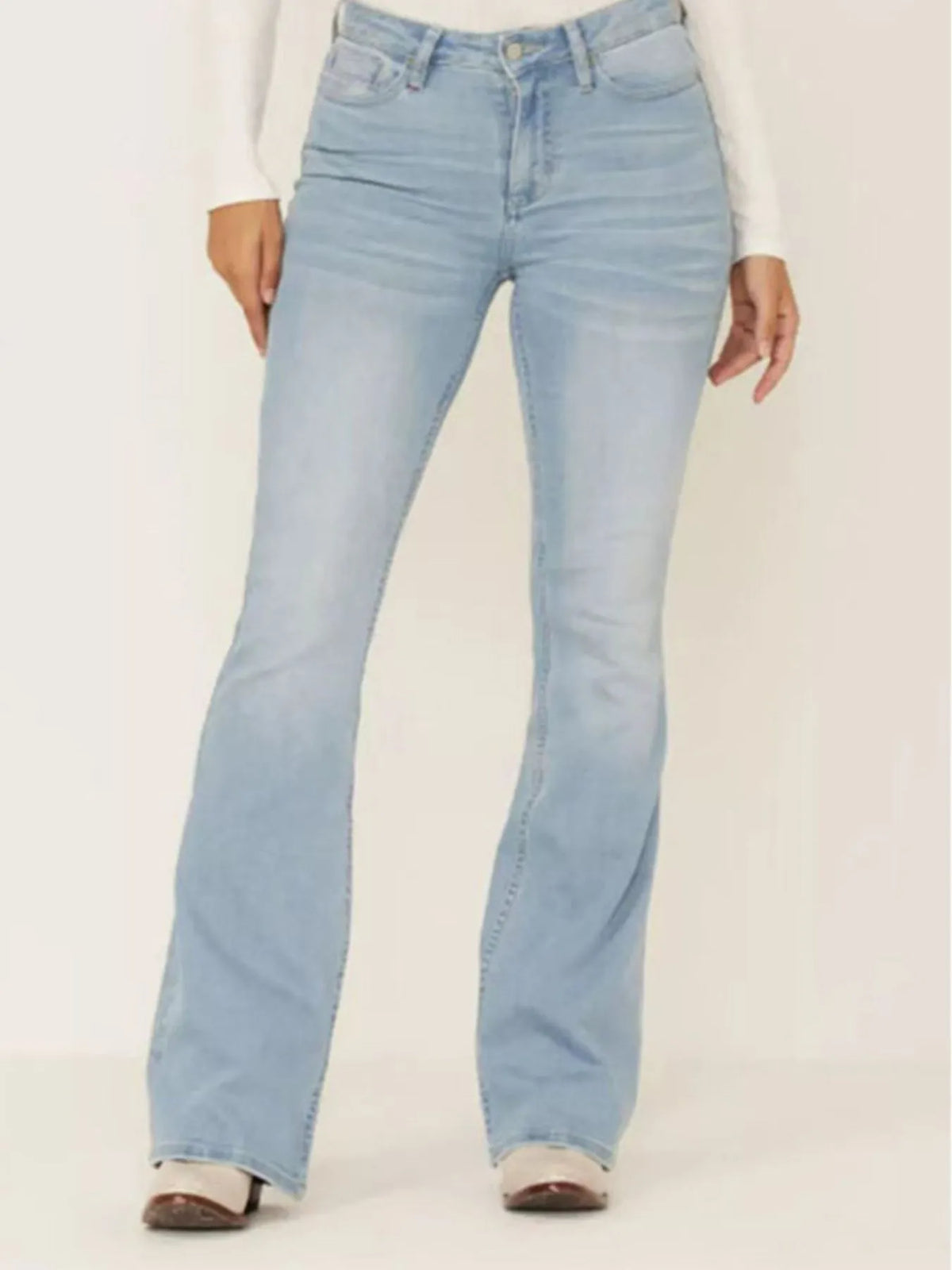Full Size Wash Flare Jeans with Pockets Plus Size