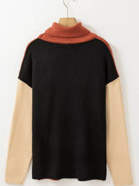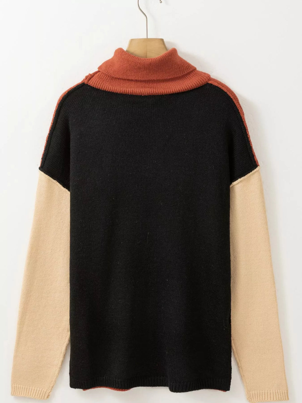Color Block Turtleneck Drop Shoulder Knit Sweater