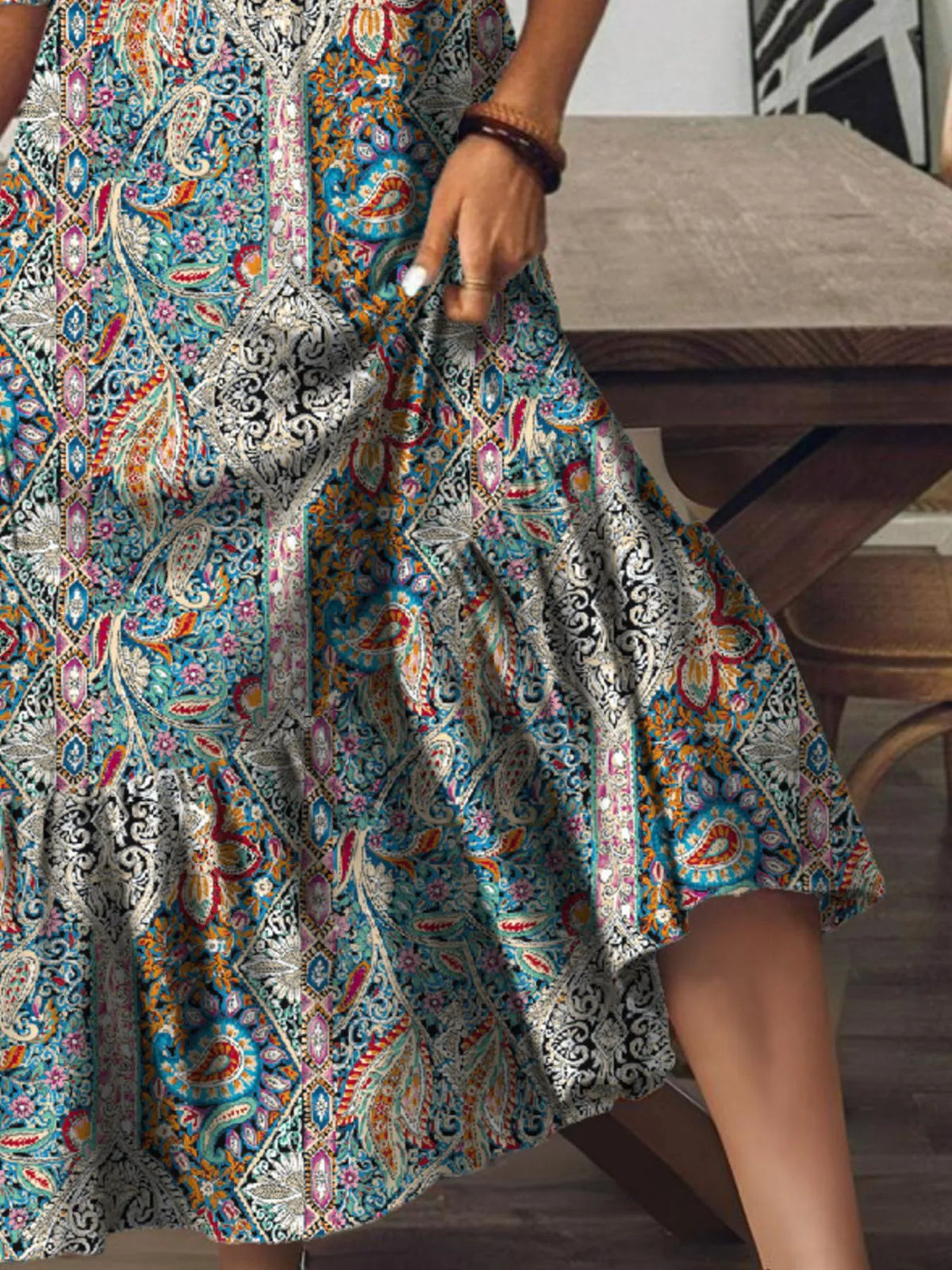 Full Size Bohemian Paisley Print V-Neck Midi Dress Plus Size