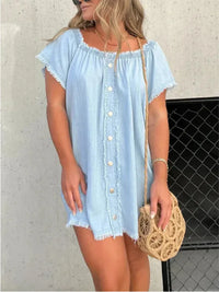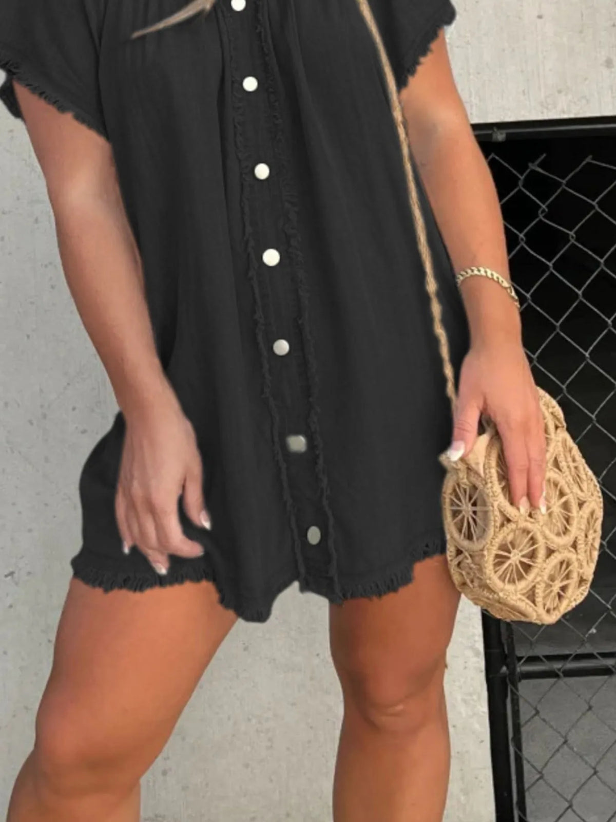 Full Size Raw Hem Mini Denim Dress Plus Size