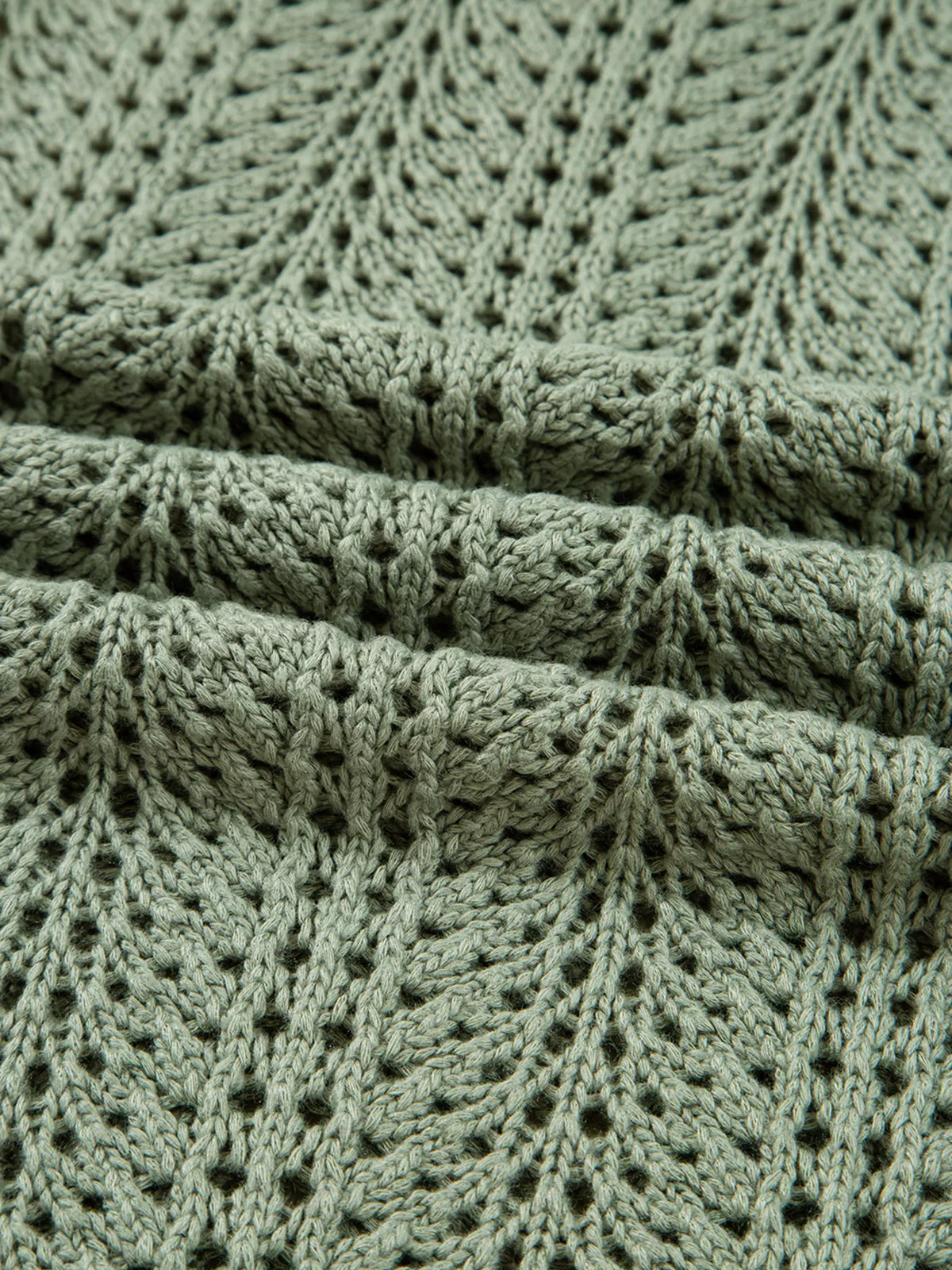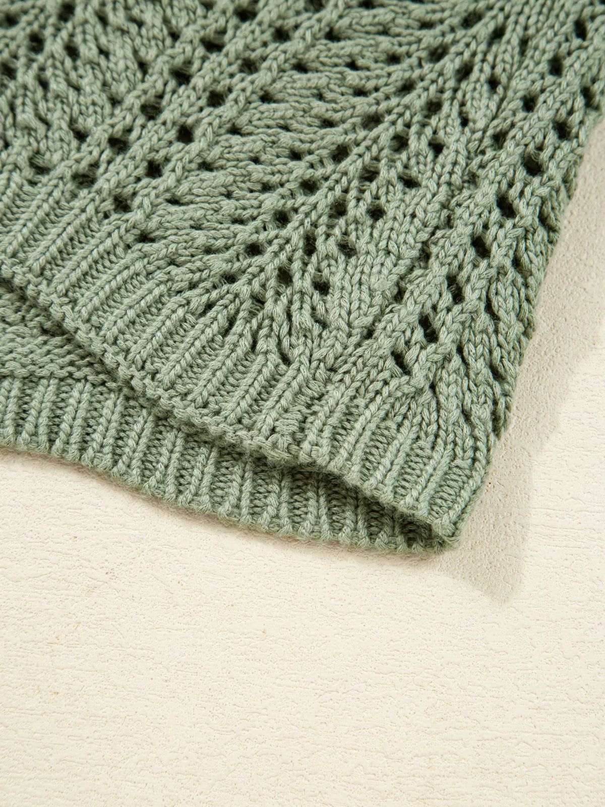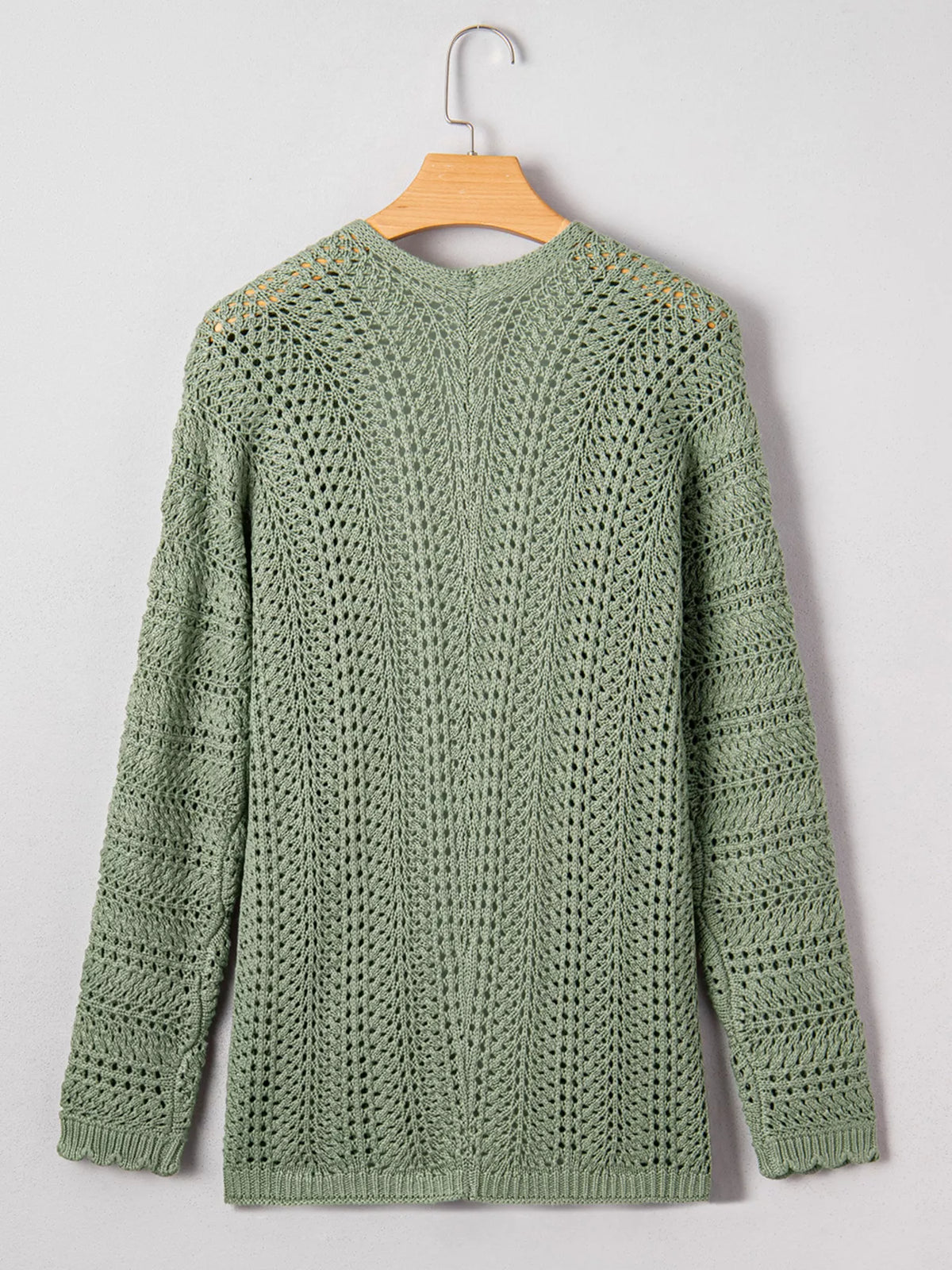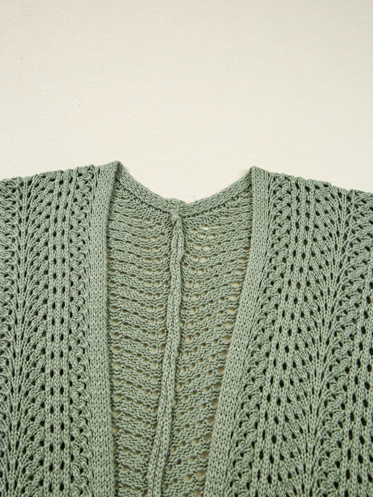Scalloped Edge Eyelet Knit Batwing Sleeve Cardigan